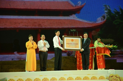 | Cérémonie de remise du certificat de reconnaissance du site historique de la dynastie des Trân en tant que site national spécial. |