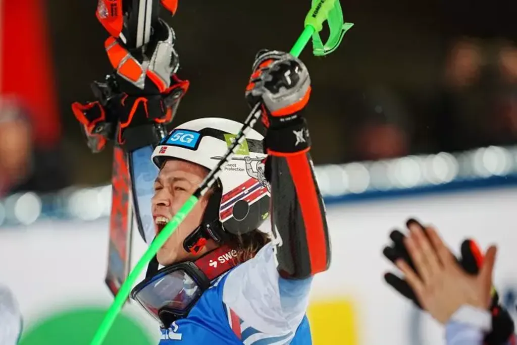 Il remporte à 23 ans sa troisième victoire en Coupe du monde de ski et sa deuxième de l'hiver, après le géant de Sölden fin octobre.