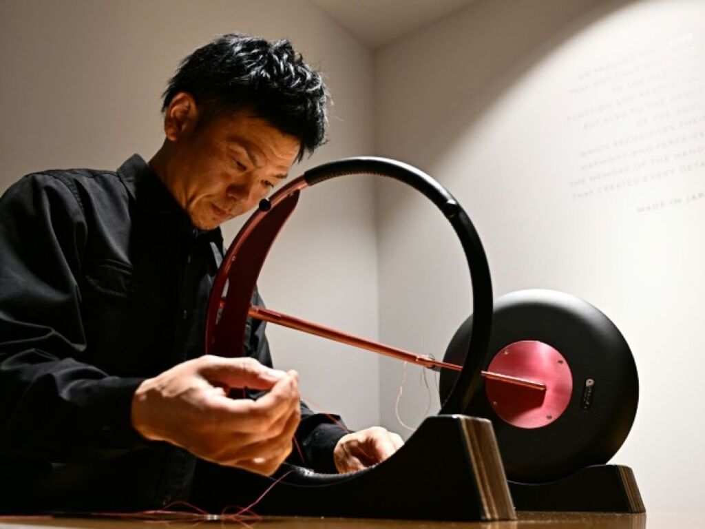 Il fait partie de la vingtaine d’artisans qui travaillent dans la manufacture établie par le fabricant Ritzwell en bord de mer près de Fukuoka dans le Sud-Ouest du Japon, “en osmose avec la nature” pour leur permettre d’imprimer cette sensation aux produits qu’ils créent.