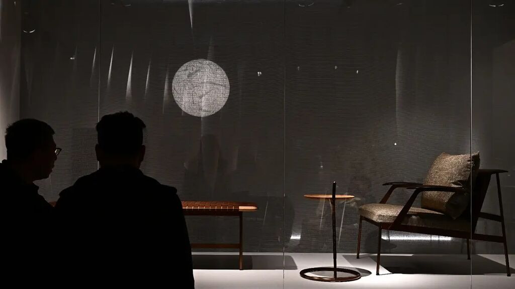 | Des visiteurs du stand de Ritzwell au Salon du meuble à Milan. |