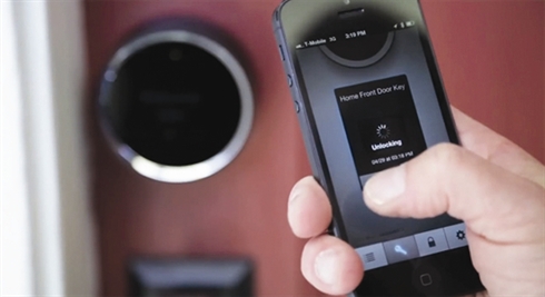 Les vétérans de la serrurerie Kwikset et Schlage présentent aussi des serrures intelligentes au CES. Celle de Kwikset, Kevo, reconnaît elle aussi le smartphone de l’habitant, et s’ouvre quand cette personne touche ce qui semble être un verrou ordinaire sur la porte.