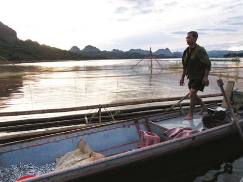 | Bùi Van Thào monte sur sa barque et commence sa journée de pêche. |