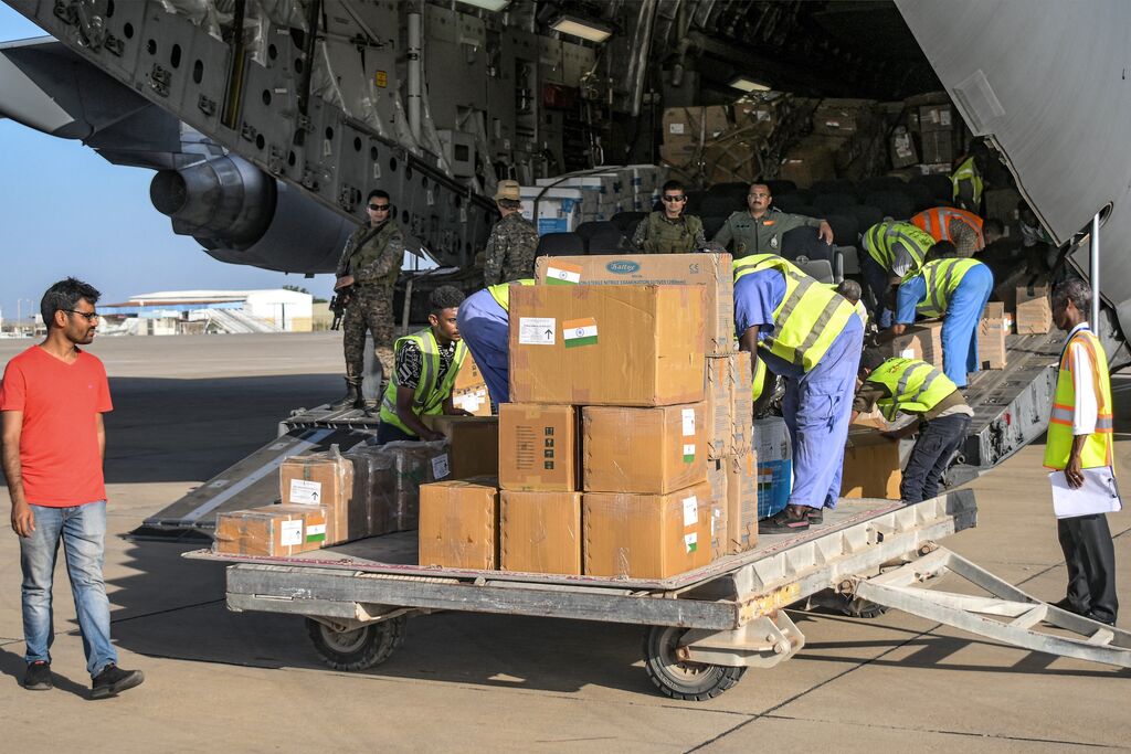 | Un convoi d'aide humanitaire atteint le Port Sudan. |