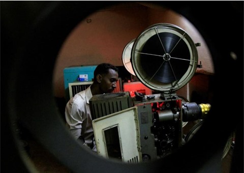 | Photo prise le 22 décembre 2014 à Omdourman, la ville jumelle de Khartoum, montrant un projectioniste au Palace of Youth and Children. |