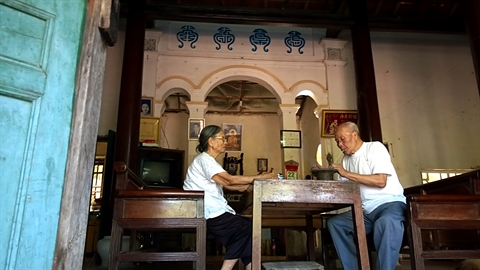 Dans la vieille maison, les choses semblent toujours dans le style ancien: Du bol de tabac rustique en poterie, Nicotiana rustica, “thuôc lào”, qui depuis deux décennies a presque disparu de la salle de séjour vietnamienne, à un balai de bambou n’étant pas raccroché mais mis à l’envers sur le mur. Dans la mentalité orientale, un balai positionné à l’envers sur un mur face à la porte peut empêcher les intrus d’entrer dans la maison. En dehors du bâtiment, il y a aussi le hamac dans la véranda, le petit bambou qui se balance sur la corde à linge, un puit, des palmiers à bétel dans la cour ... Tout cela suscite des souvenirs à beaucoup de Vietnamiens. Dans la maison, le couple de 90 ans vit et travaille sans cesse. Et leur sourire ne montre aucune trace de fatigue et de leur grand âge.