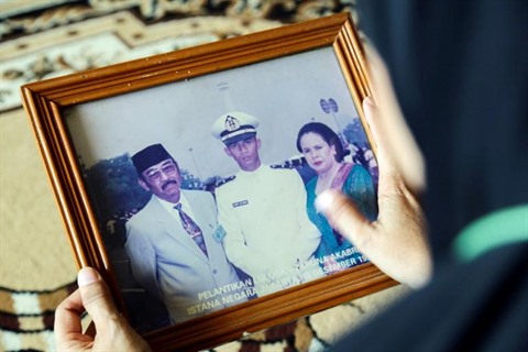 | Une photo du colonel Harry Setiawan, commandant du sous-marin indonésien qui a coulé avec 53 hommes à bord, le 24 avril 2021 au domicile de sa famille à Depok, en Indonésie. |