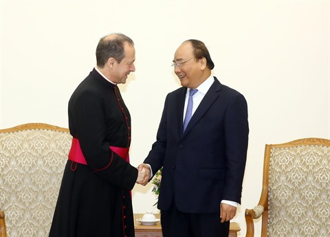 | Le Premier ministre Nguyên Xuân Phuc (droite) et le sous-secrétaire du Vatican pour les relations avec les États, Mgr. Antoine Camilleri, le 18 janvier à Hanoï. |