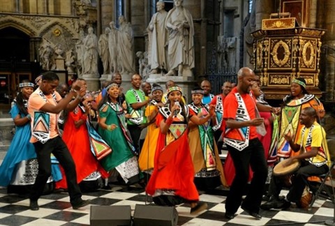 | Le Soweto Gospel Choir à Westminster Abbey à Londres, lors d'une cérémonie en hommage à Nelson Mandela, le 3 mars 2014. |