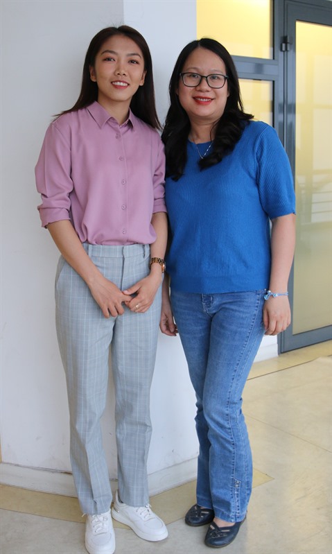 | Huynh Nhu (gauche) est l’une des rares footballeuses vietnamiennes à porter des cheveux longs. |