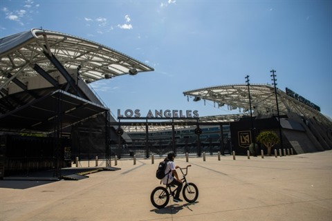 | Le Banc of California Stadium, stade de l'équipe de football du Los Angeles FC, le 9 mai. |