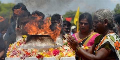 | Des femmes tamoules sri-lankaises participent à une cérémonie à Mullaivaukkal près de Jaffna le 18 mai. |