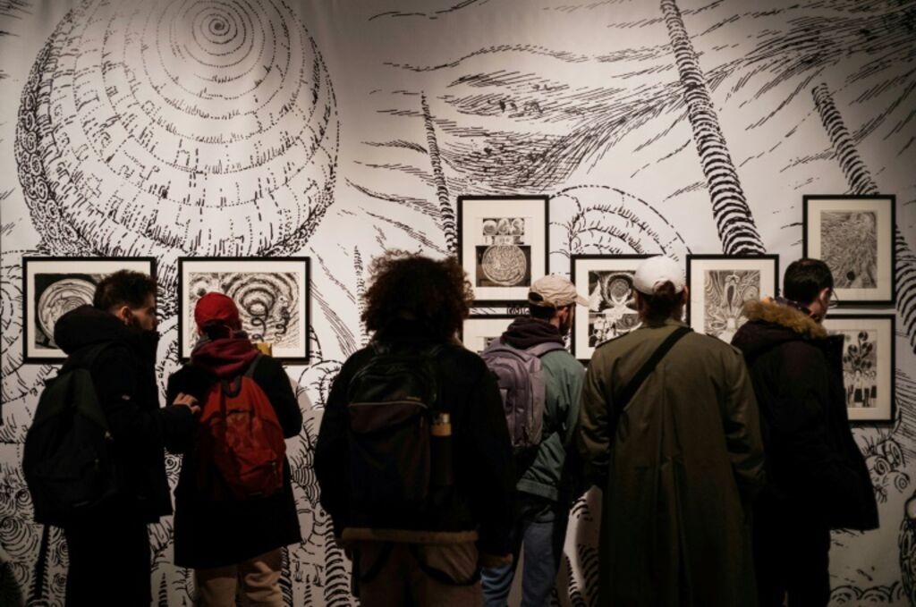 | Des visiteurs à l'exposition Junji Ito, maître du manga d'horreur, le 27 janvier 2023 au Festival de la BD d'Angoulême. |