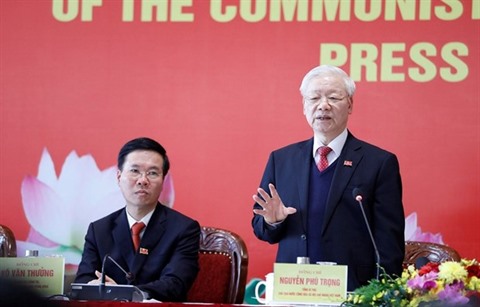 | Le secrétaire général du PCV Nguyên Phu Trong prenant la parole à la conférence de presse le 1er février à Hanoï. |