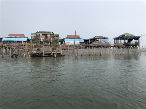 À leur arrivée à l’embarcadère, les visiteurs sont attendus par des sampans qui les amènent à travers un dédale de pieux de bambou vers tel ou tel restaurant. Façades, planchers, toits, ponts, pilotis…, tout est en bambou. D’une superficie parfois de plusieurs centaines de mètres carrés, chaque établissement est capable d’accueillir des centaines de convives.