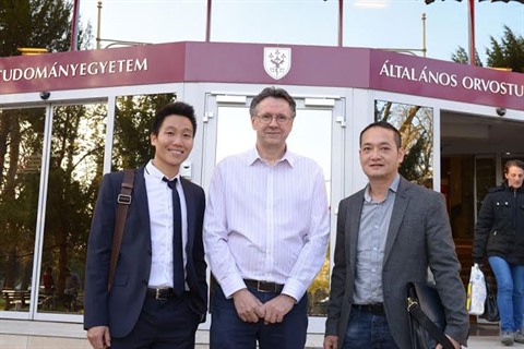 | Pham Truong Son (1er à gauche) et certains des professeurs hongrois qui travaillent à ses côtés. |