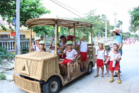 | Voiture électrique couverte de bambou de Vo Tân Tân à Hôi An, province de Quang Nam (Centre). |