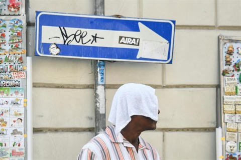 | Un homme se protège du soleil dans le centre de Rome, où les températures dépassent les 40 degrés le 2 août. |