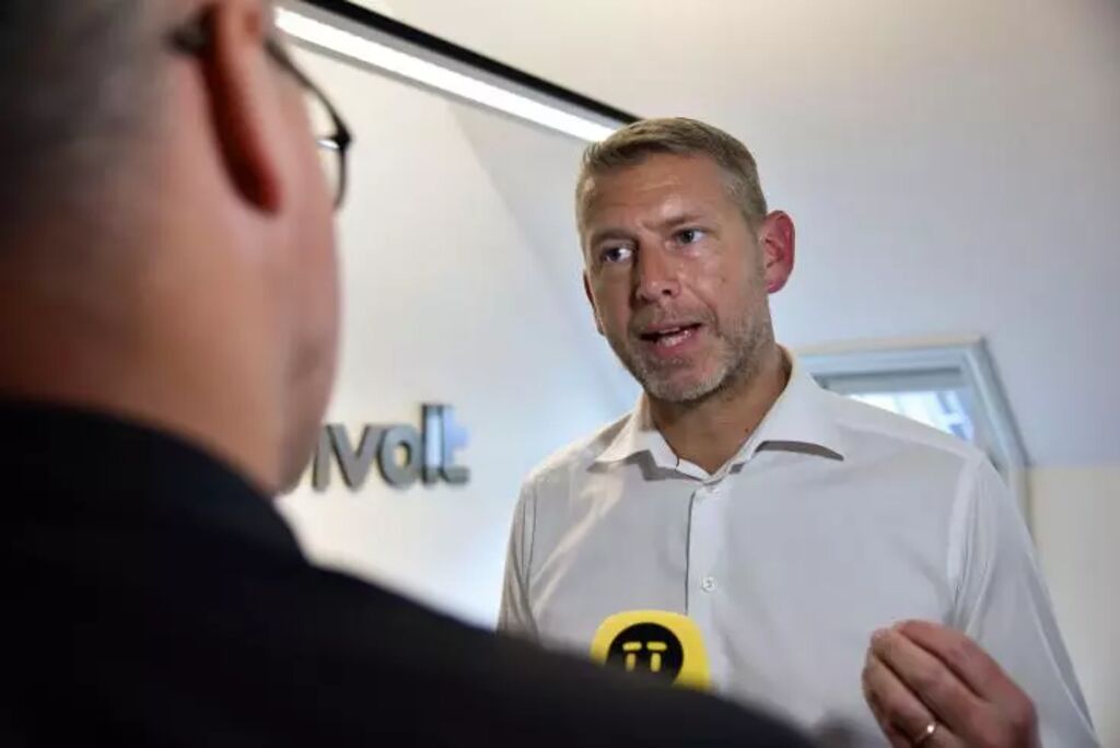 | Peter Carlsson, le PDG de Northvolt, s'entretient avec un journaliste, à Stockholm le 12 juin 2019. |