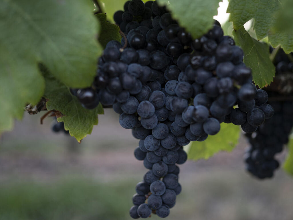 | Baies bleu-noir du Tannat, dans le vignoble de la bodega Bouza, à Melilla, en Uruguay. |