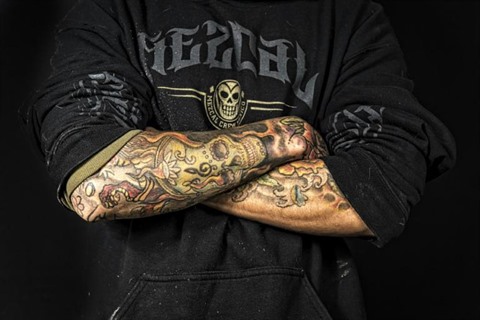 | Les tatouages d'un artiste mexicain, le 18 février 2017 à Mexico. |
