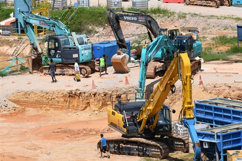 | Ouvriers travaillant sur un chantier de construction à Singapour. |