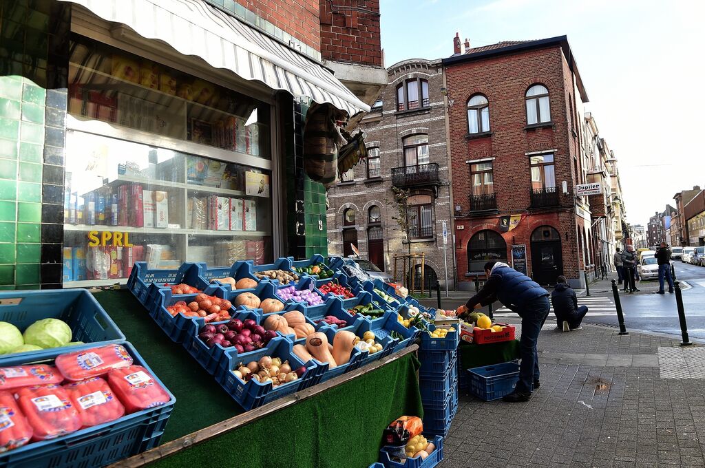 | Des fruits et légumes vendus sur une rue à Brussels, en Belgique. |