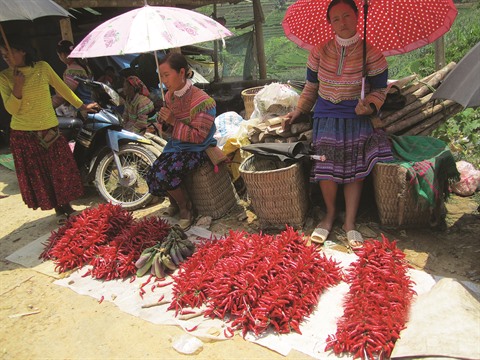 | Un spectacle de khèn (sorte de flûte des H’Mông) lors d’une foire de la région montagneuse Tây Bac. |