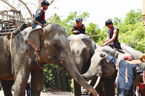 | Certains villages du Tây Nguyên élèvent encore des éléphants domestiques. |