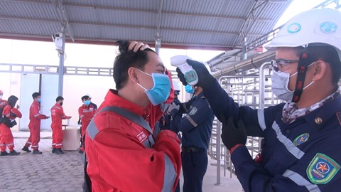 | Contrôle de la température corporelle obligatoire pour les ouvriers du parc industriel de Nghi Son, dans la province de Thanh Hoa (Centre). |