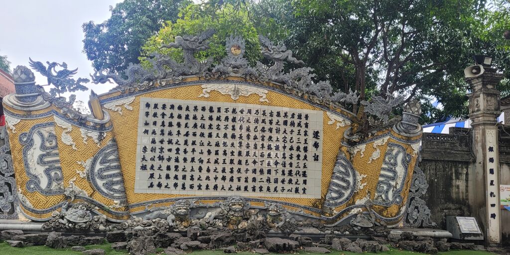 Le complexe a ensuite été agrandi pour inclure les derniers lieux de repos de sept de ses successeurs. Le temple est orienté sud-ouest, en direction de la capitale, et s’étend sur une superficie de plus de 31.000 m2. L’axe central se prolonge vers l’ouest jusqu’à un bassin en forme de croissant qui abrite un pavillon sur l’eau (thuy dinh), utilisé pour les représentations de marionnettes sur l’eau.