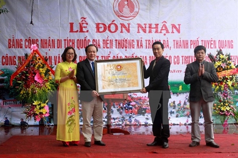 | Les autorités de la province de Tuyên Quang ont reçu un certificat reconnaissant le temple Thuong comme monument national. |