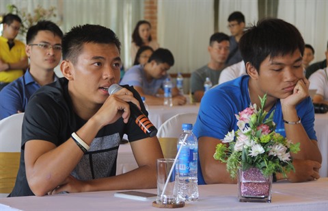 | Ly Hoàng Nam (gauche) et Nguyên Hoàng Thiên lors de la conférence de presse sur le tournoi Vietnam Open 2016, en octobre dernier. |