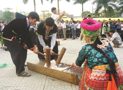 "Au lieu du traditionnel +bánh chung+ (gâteau de riz gluant de forme carrée) les H’mông, préparent le +bánh giây+ (gâteau de riz gluant de forme ronde). Sa confection nécessite de pilonner le riz gluant cuit à la vapeur, avant de le modeler en boules", éclaire le vieux Dung. Chez les H’mông, le bánh giây est tellement important qu’une fête lui est dédiée pendant le Têt.