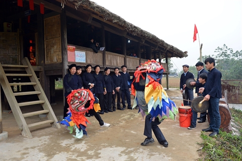| Pour les Tày, la danse du lion est incontournable lors du Nouvel An lunaire. |