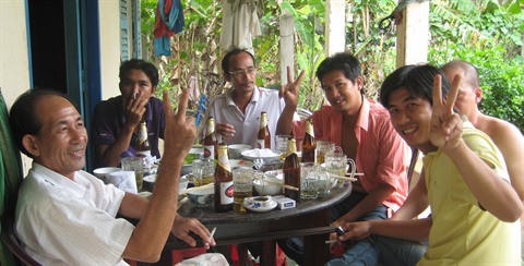 | Des amis vietnamiens et français autour de la table dans la province de Tiên Giang (Sud) lors de la Fête nationale du 2 septembre. |