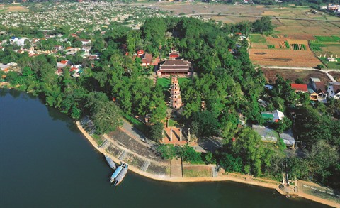 | Vue aérienne de Thiên Mu à Thua Thiên-Huê, l’une des plus célèbres pagodes du Centre. |