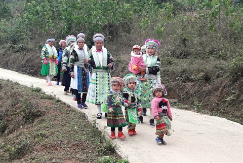 | Les Mông de la province de Thai Nguyên dans les costumes traditionnels aux premiers jours du Nouvel An lunaire. |