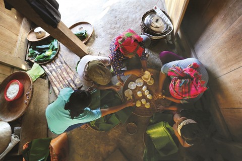 Autour des foyers, mères, sœurs et petites filles des Hà Nhi préparent les gâteaux de riz gluant en vue du Nouvel An.