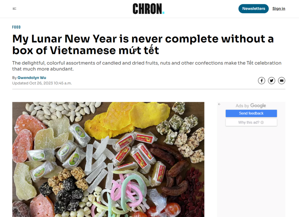 | L'article sur les fruits confits du Têt paru sur le journal américain Houston Chronicle. |