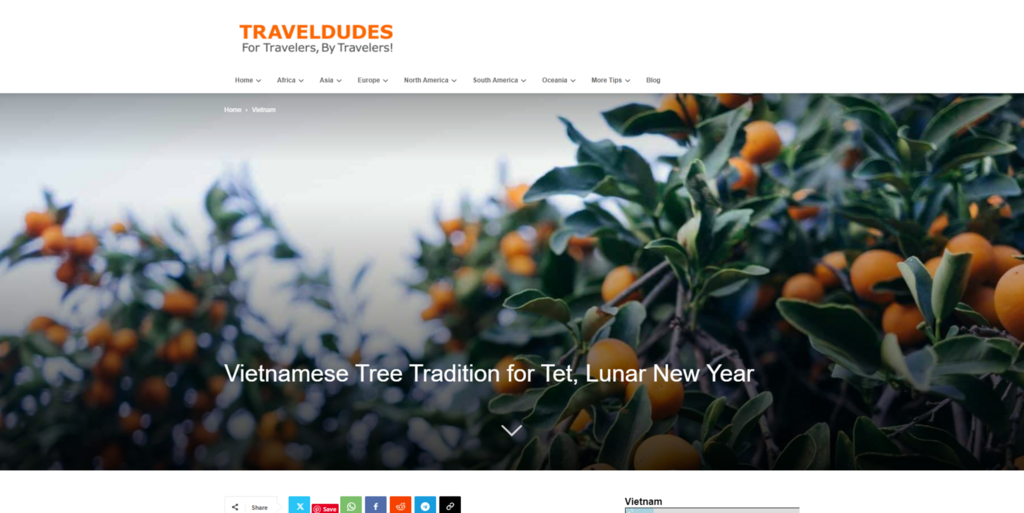 Quant à lui, l’écrivain blogger sud-africain Bridget Langer du site web de tourisme Travel Dudes est impressionné par les plantes d'ornement traditionnelles du Têt au Vietnam.
