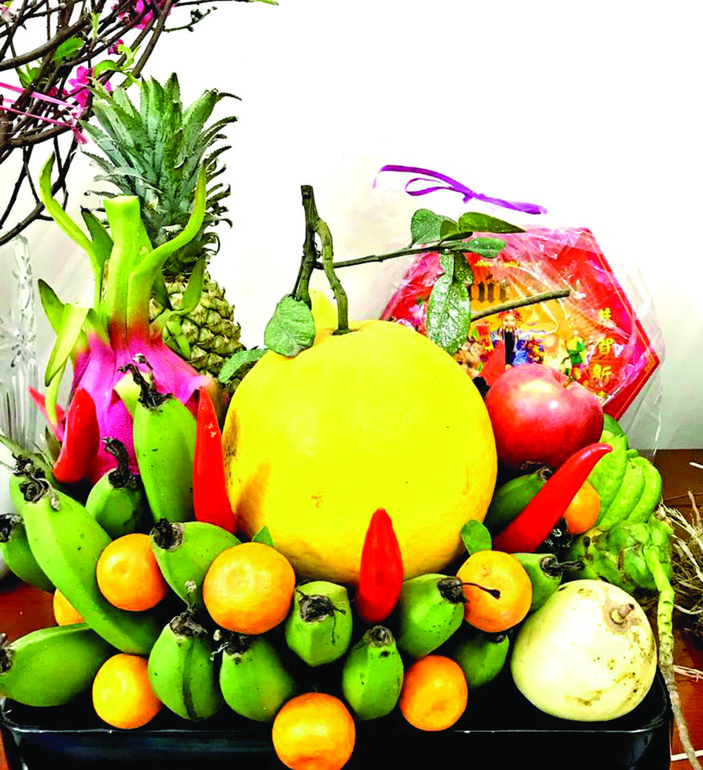 | Le plateau de cinq fruits, composé de fruits de couleurs et de formes variées, représente les cinq éléments : métal, bois, eau, feu et terre. Photo : GD/CVN |