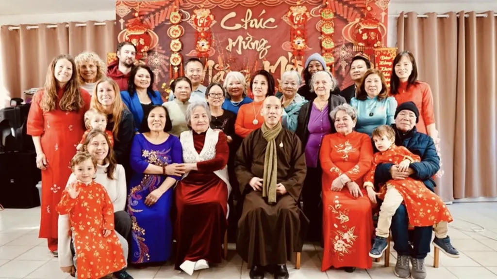 Malgré l’éloignement géographique, les grandes fêtes - Têt Nguyên Dan (Nouvel An lunaire), Vesak (naissance du Bouddha), Vu Lan (fête des Mères selon la tradition bouddhique) ou encore la Fête de la mi-automne - sont maintenues avec ferveur, conjuguant spiritualité et affirmation identitaire. L’attitude des fidèles, empreinte de sérénité et de respect, reflète cette synthèse entre ouverture et piété.