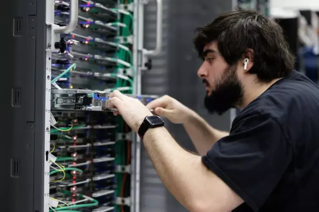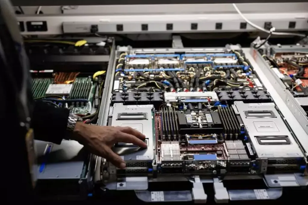 Non loin de là, dans un vacarme assourdissant, ce sont les UltraServers, serveurs équipés chacun de 144 exemplaires du Trainium 3, qui sont mis à l'épreuve avant d'être livrés.