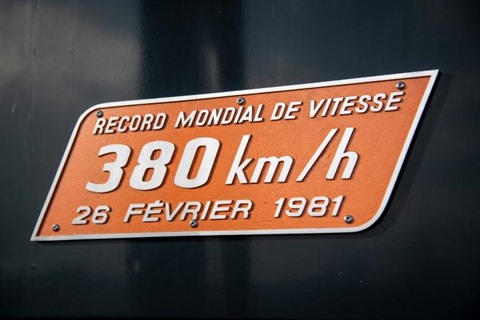| La plaque commémorant le record de vitesse battu en 1981 par le TGV, photographiée au Technicentre de Villeneuve-Saint-Georges, le 26 février, 40 ans plus tard |
