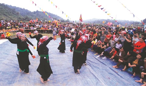 | Une danse then lors de la fête "Lông Tông" dans le district de Van Bàn, province de Lào Cai. |