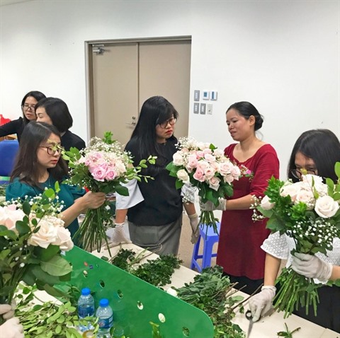 | Mme Lương et un expert néerlandais de l'art floral. |