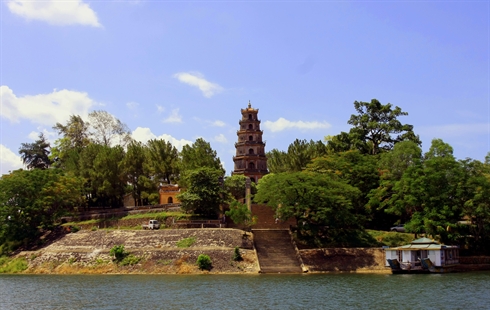 Fondée en 1601, la pagode de la Dame céleste (Thiên Mu en vietnamien), située au bord de la rivière des Parfums, est la plus connue de Huê. Elle se signale depuis la rivière par une haute tour octogonale de sept étages évoquant les sept réincarnations de Bouddha. L’édifice fut construit à l’emplacement où, selon la tradition, était apparue une "Dame céleste" vêtue de rouge. Elle demanda que le seigneur du lieu fasse bâtir une pagode afin de maîtriser les forces souterraines et de dominer la région.