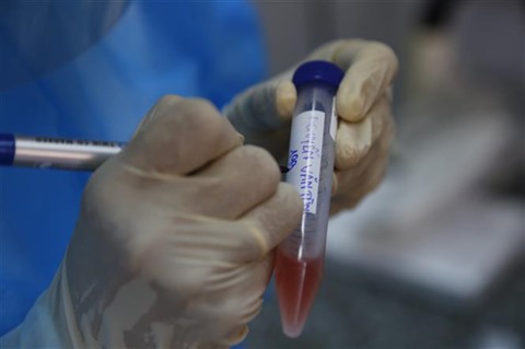 | Un échantillon pour le test du COVID-19, à Tuyên Quang (Nord). |