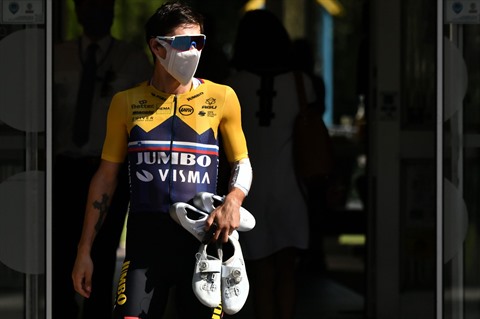 | Le Slovène Primoz Roglic avant une séance d'entraînement, à Nice le 27 août 2020. |