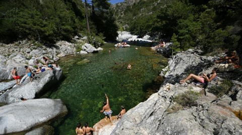 | Baignade dans une rivière près de Vivario, en Corse, le 29 juillet. |